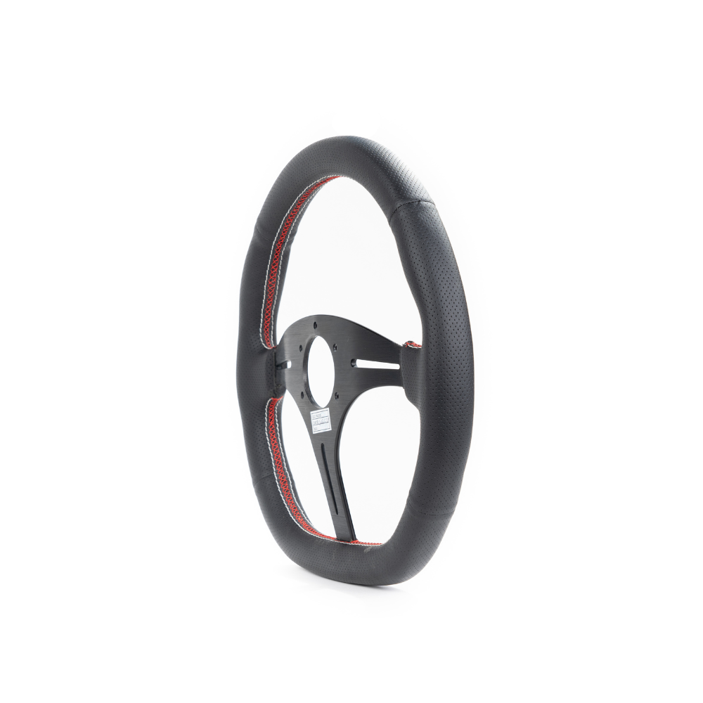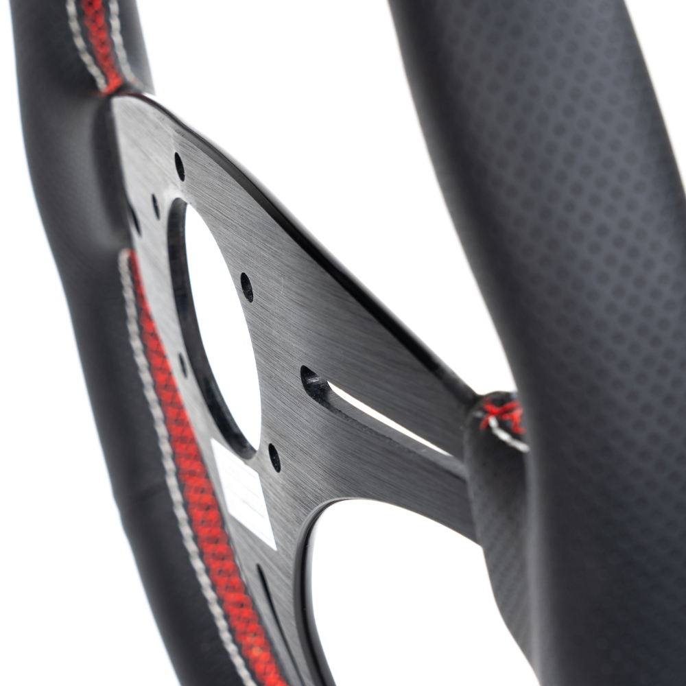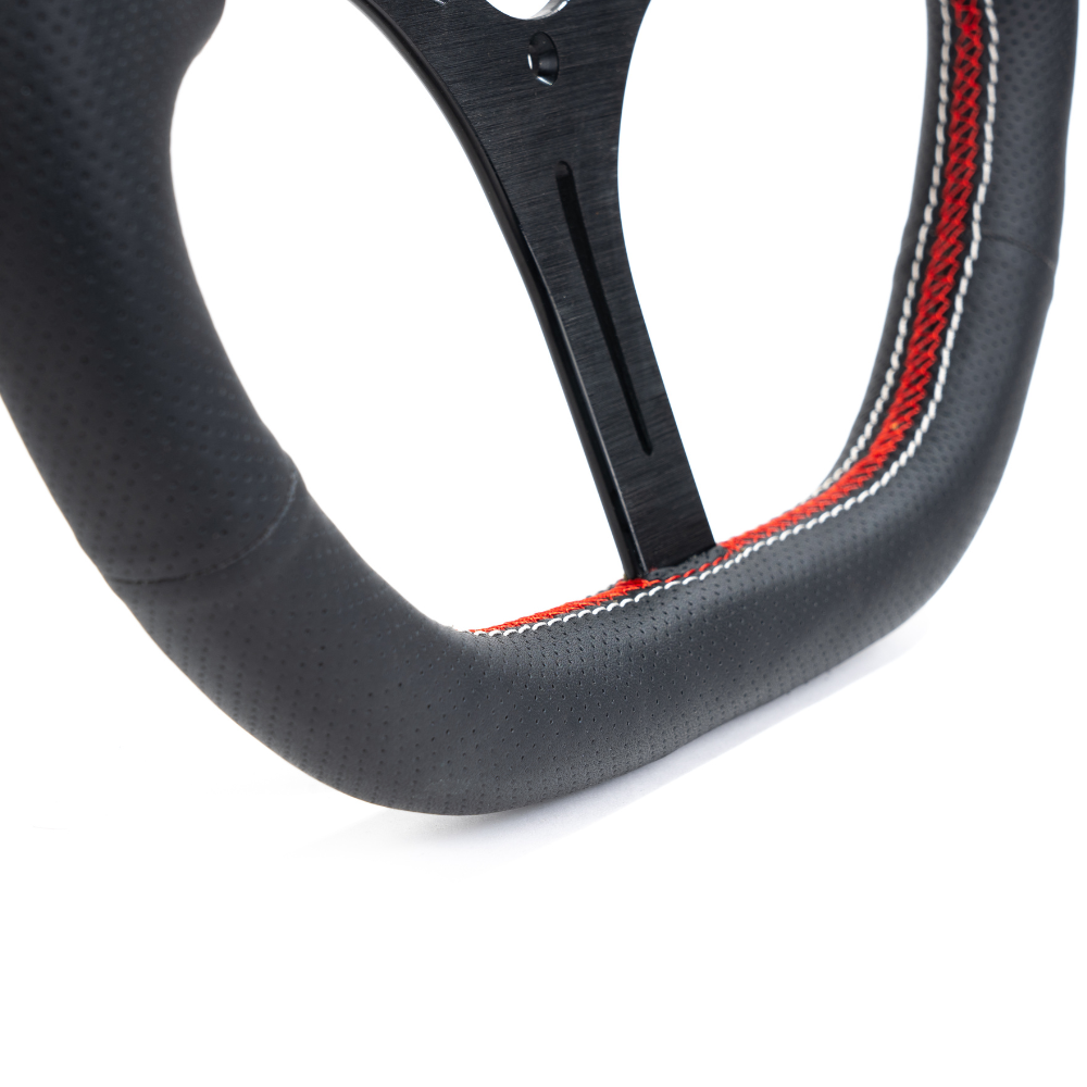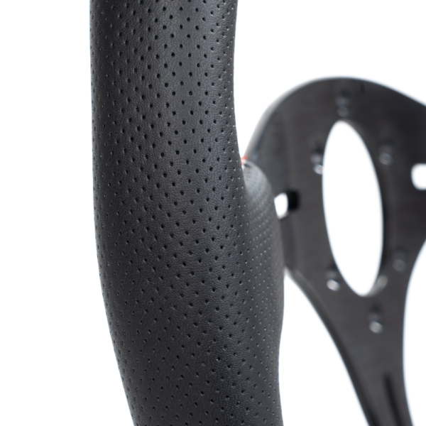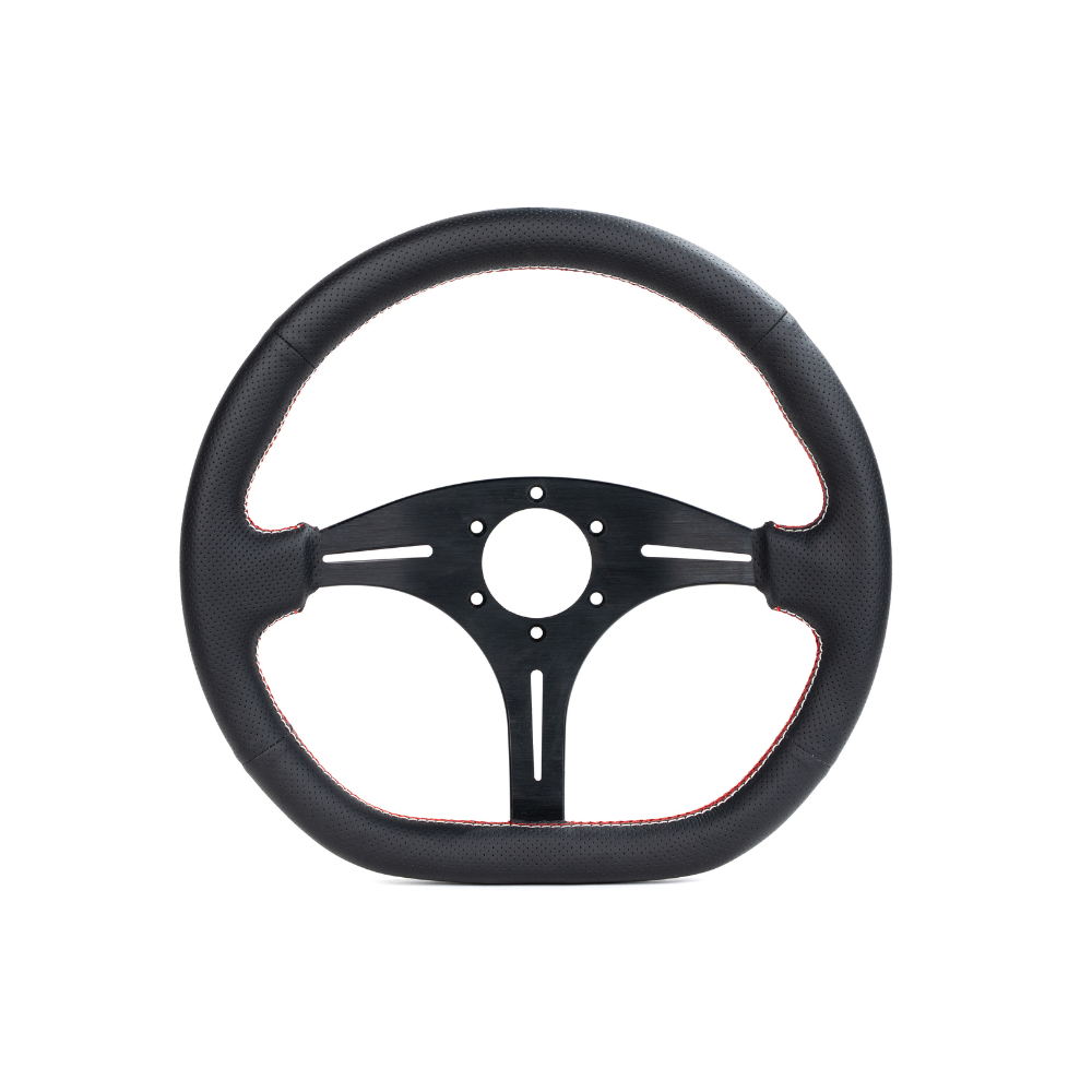 - Flat-edged D-contour, motorsports ergonomics—easier cockpit entry/exit
