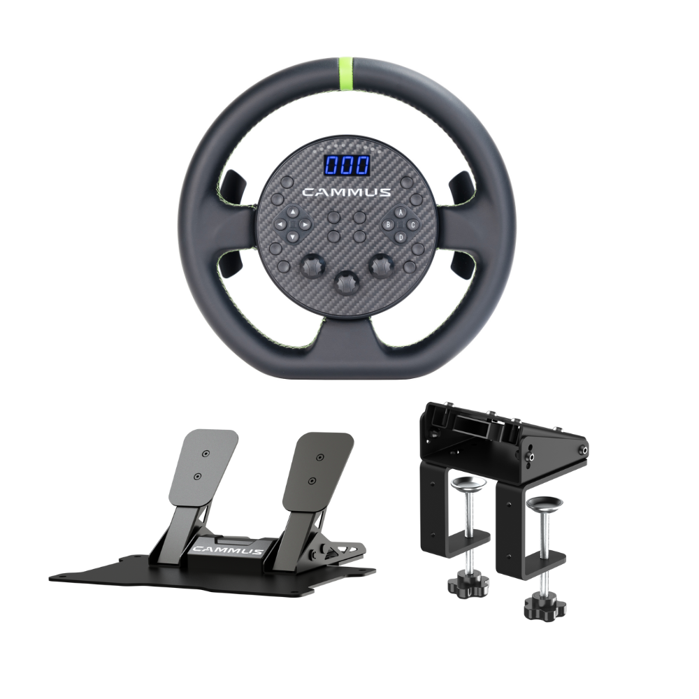 Up until now, I’ve never had a set preference when it comes to my wheel and pedal setup, having used a wide variety of different setups looking for that something special. I can say I finally found it… This might be one of the greatest feeling wheels I have EVER used in my many many years of simRacing. The Cammus C5. It’s got a built in direct drive base to help really deliver the feel of bumps, spins, and more to my hands, much like driving a real racecar. I can’t wait to use this throughout the off season and really hone my skills on the real and the virtual track. Did I mention the wheel and wheel desk clamp are literally only $280 too? A great wheel for entry level or professional sim-racing enthusiast.