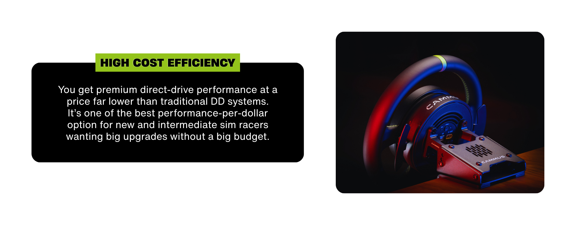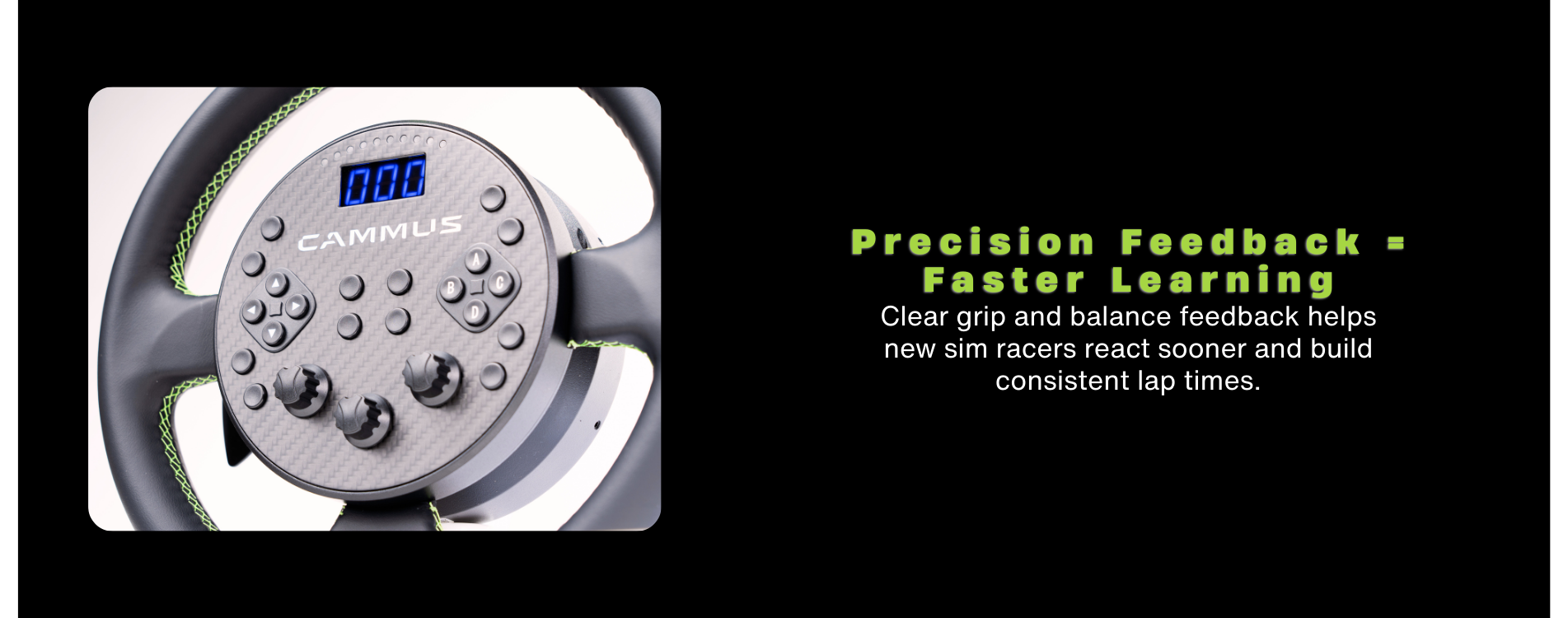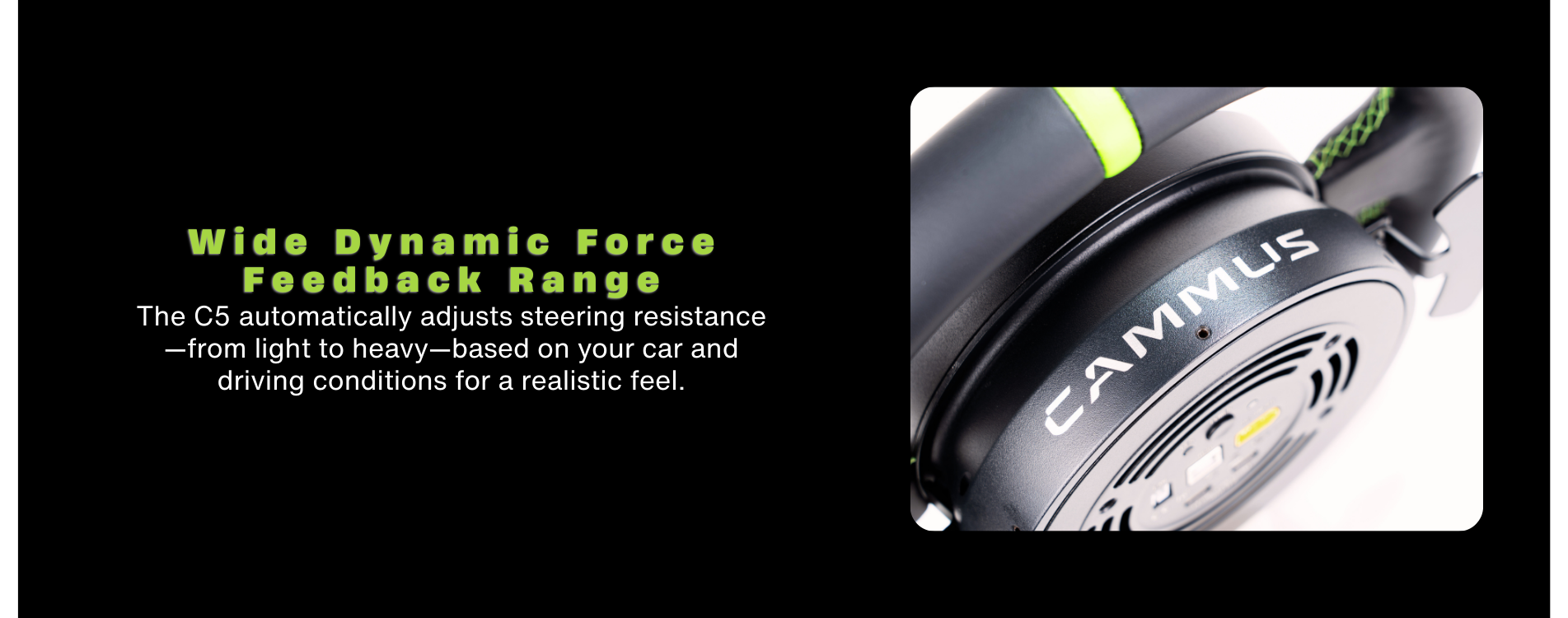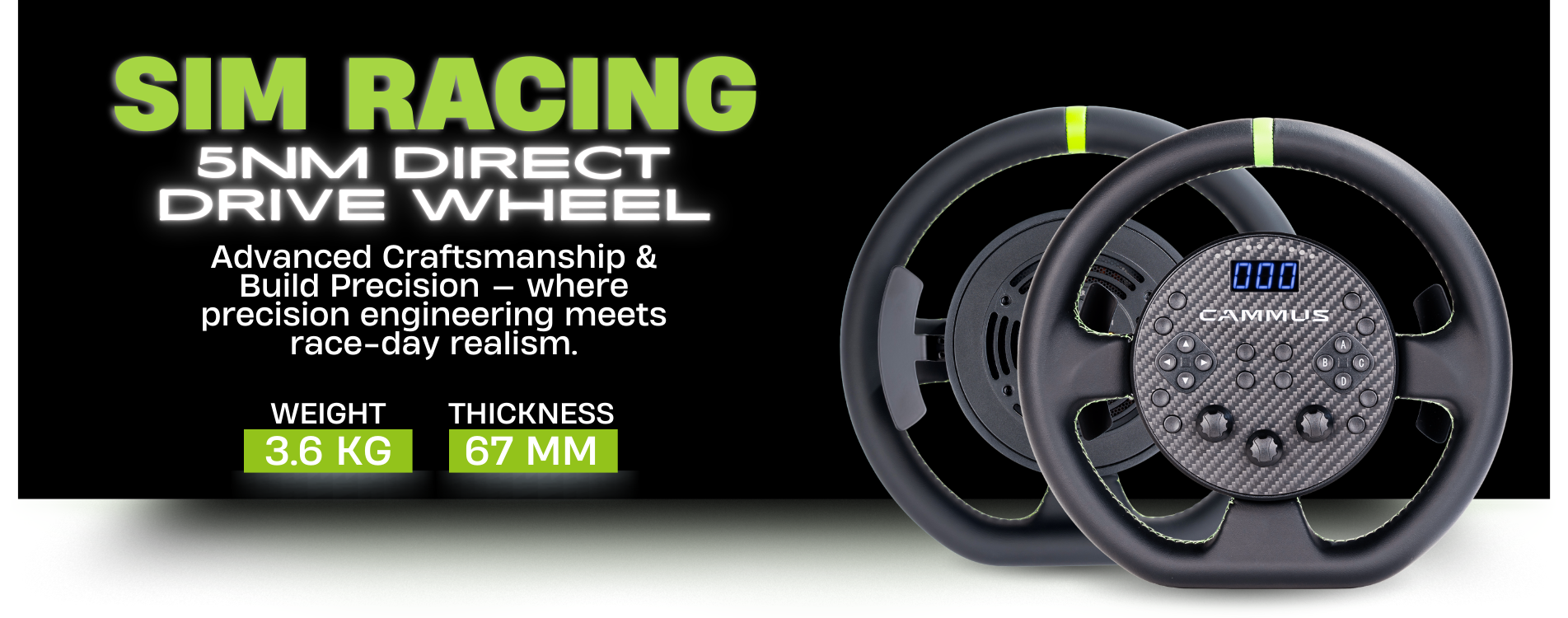 I am so glad that I choose to order the C5 wheel, since it arrived i have got quicker & quicker and this is all due to the refined feeling the C5 is giving me. The design is so sleek and you can tell how much engineering has gone into this all in one DD wheel/wheelbase. I have used many of the other lower power DD bases when visiting sim centres around the UK and I can honestly say I consider this to be the leader in the low power DD wheel market. This wheel will only get better & better once all the settings are fine tuned to how I like it. Well Done CAMMUS!!!