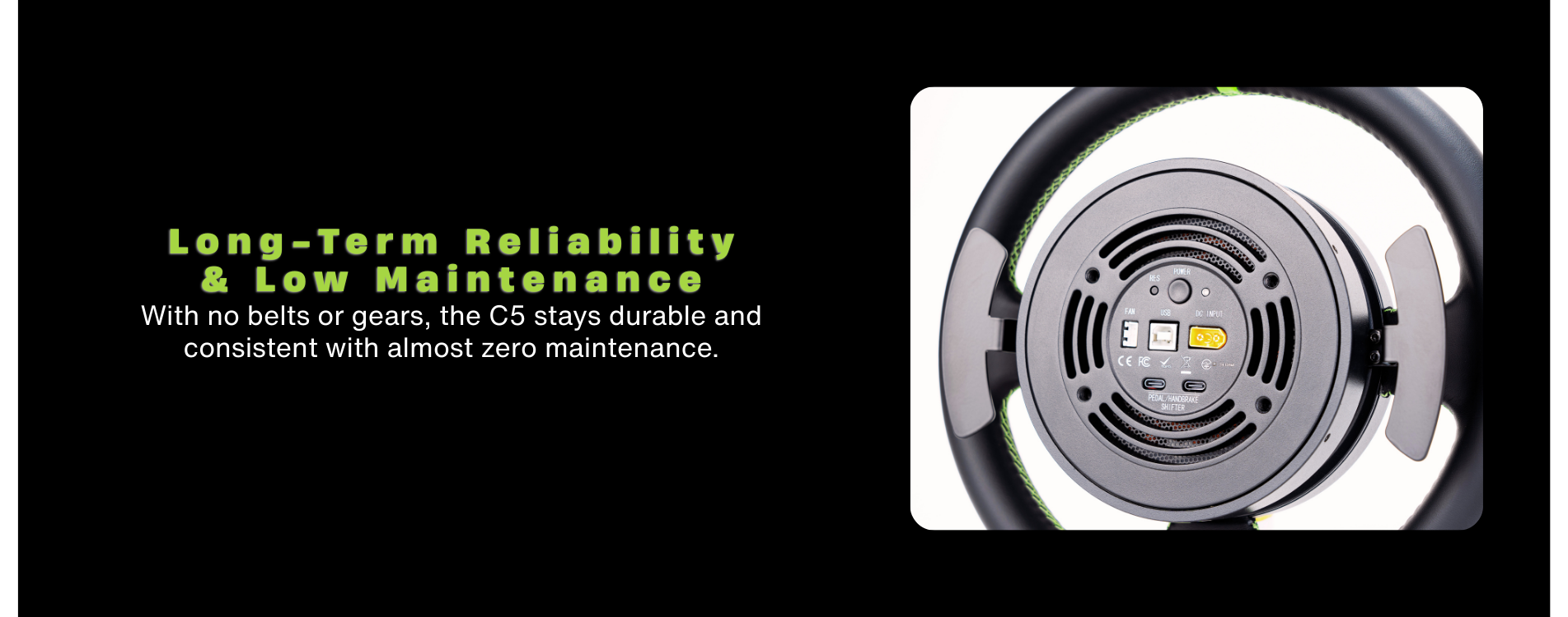 I have the C5 for a while now and it was send to me for review. It’s a TOTAL GAME CHANGER, soooo much better than my old logitech. The first thing I noticed was the fact that I had a lot more confidence when driving a car on the limit, I felt everything way more detailed and for the first time, I actually felt the car I was driving. The level of detail is extraordinary for this price range and that genuine carbon fiber front plate ads some respect. Overall, I really enjoyed the experience I had with the C5 bundle and I’d never go back to my old Logitech after the C5